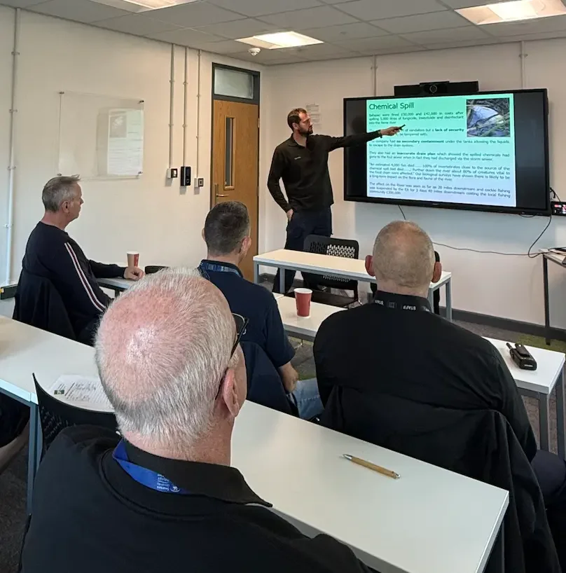 Every spill response training session will be built bespoke to your requirements, ensuring it covers the pollution risks and the spill control measures you have on site (e.g. spill kits, drain protection, interceptors etc). We do not offer open courses as we believe all spill training sessions should be tailored to your site specific requirements. All sessions will be held on your site minimising downtime and travel requirements. We offer a regular spill training course and a spill train the trainer session. More information on both can be found below.